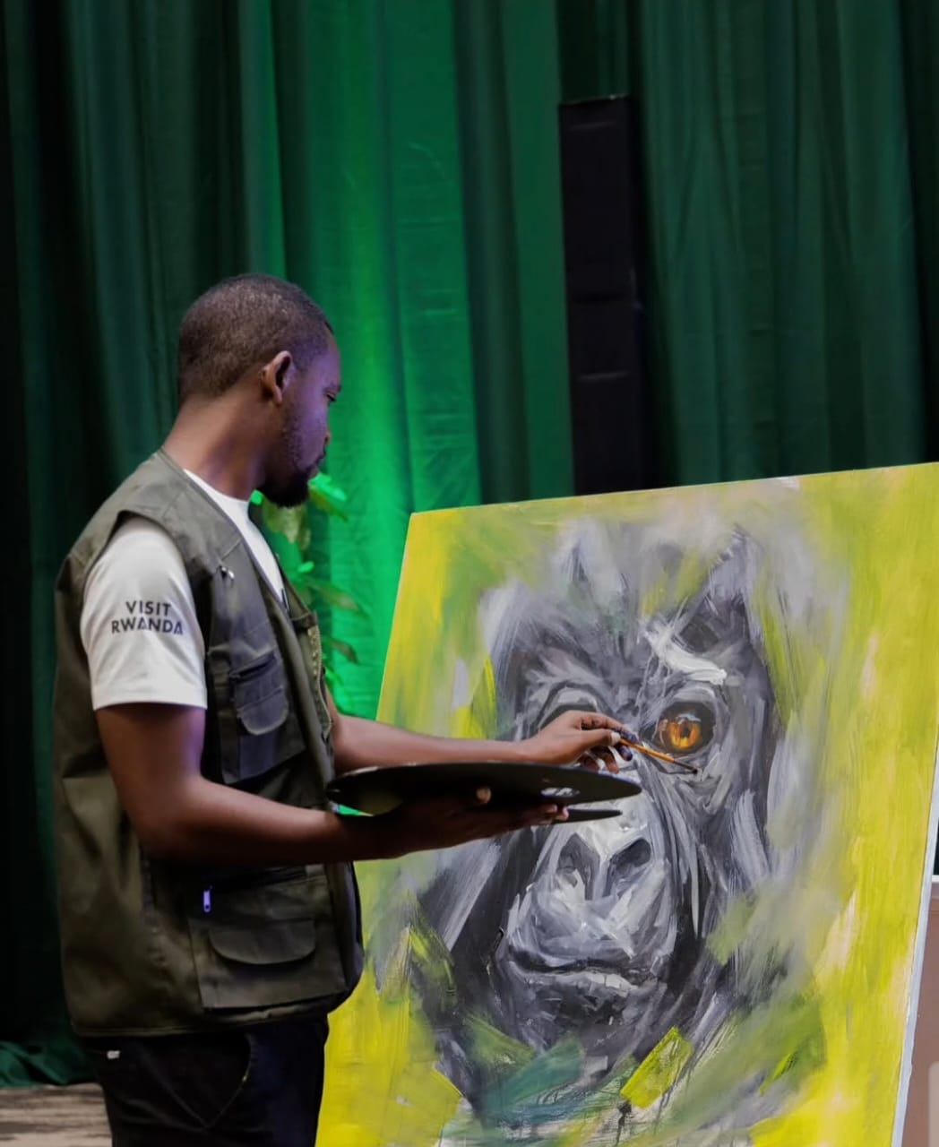 - Participate in a live painting class – Learn painting with Rigobert, a talented wildlife artist from Musanze.